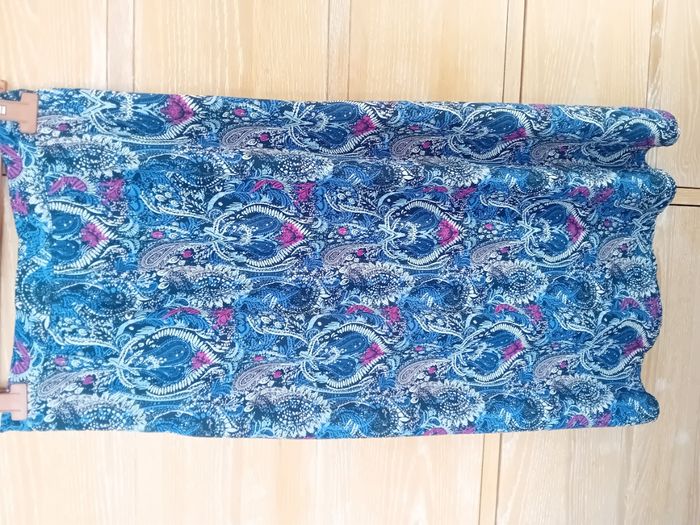 Jupe femme de marque Gémo neuve (jamais portée, seulement lavée et repassée). Taille : 38 Couleur : bleu, rose, blanc Fermeture éclair sur le côté. Jupe légère.