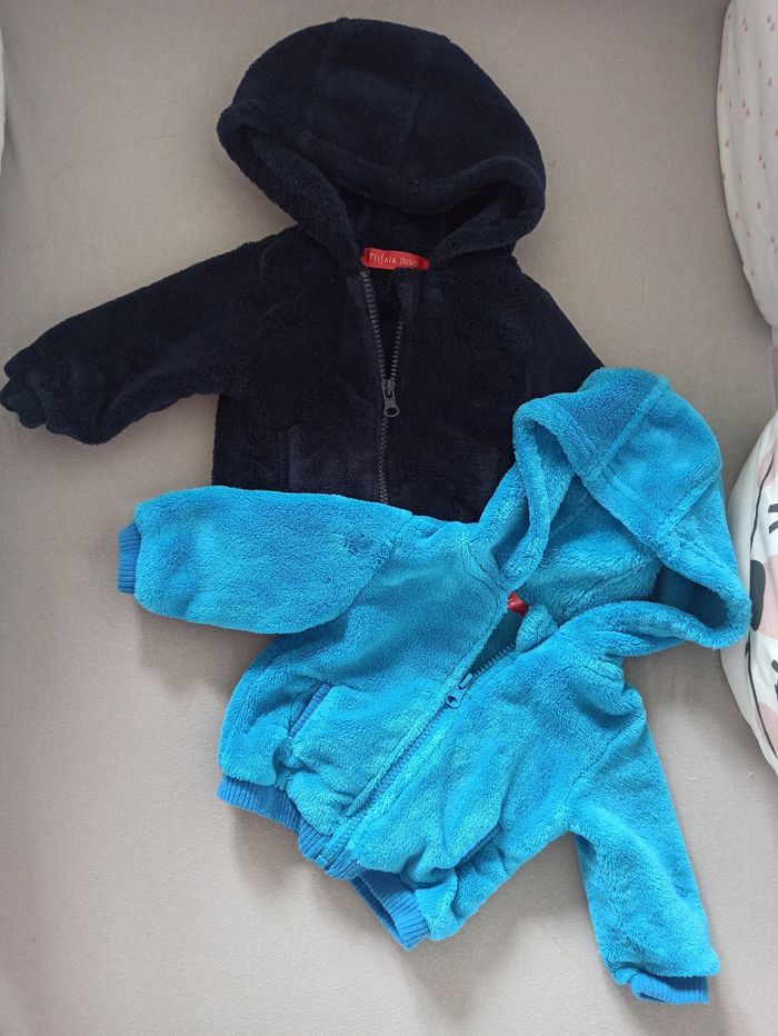 Lot de deux polaires taille trois mois, bleu marine et bleu clair