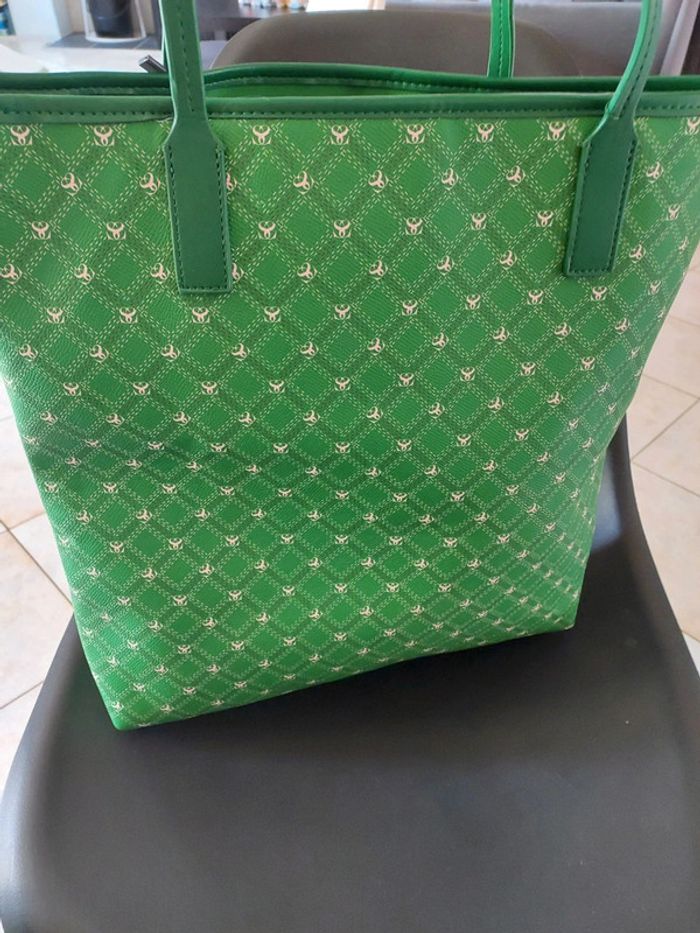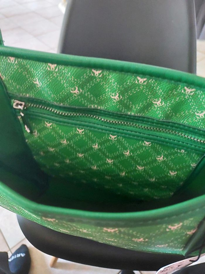 Bonjour Je vends ce sac pour femme Marque stradivarius Jamais servie Couleur vert avec motifs blanc Une petite pochette à l intérieur