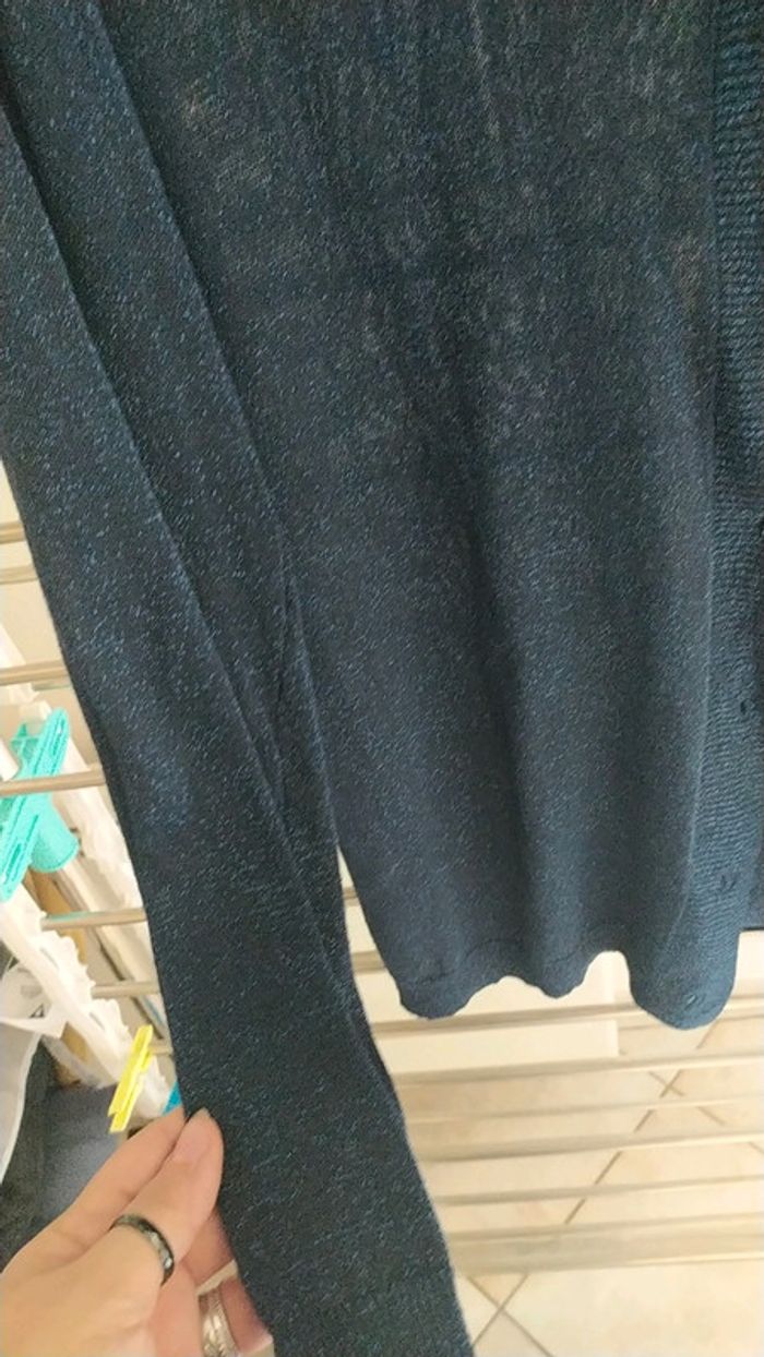 Bonjour Je vends ce gilet fin pour femme De marque Kiabi Taille xl Gilet long et fin De couleur bleu marine avec des paillettes Sur la dernière photo je montre un petit défaut Profitez je fais une remise a partir de 2 articles achetés qui sera effectué lors du paiement