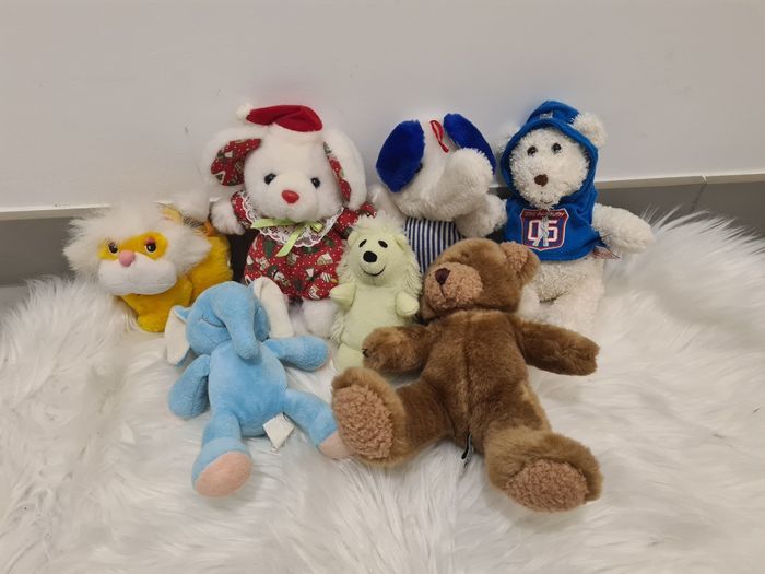 Lot de 7 peluches Le lot 6€ A l'unité 1€ (Sauf l'ourson marron 2€, et le blanc avec sweat à capuche 2,50€)