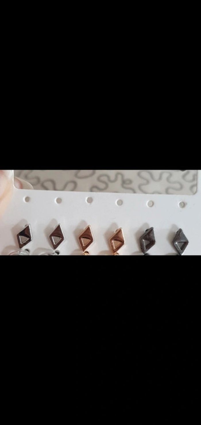 Boucles d'oreilles neuves double triangles argentées - photo numéro 2