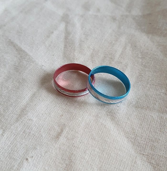 Duo de bagues bleu et rose brillantes