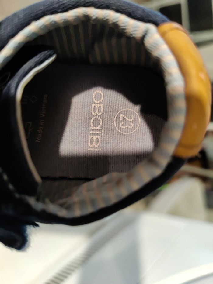 Chaussure bleu marine obaibi taille 23 avec fermeture éclaire pour faciliter l'enfilage. Marque obaibi. Portée mais encore en très bon état.