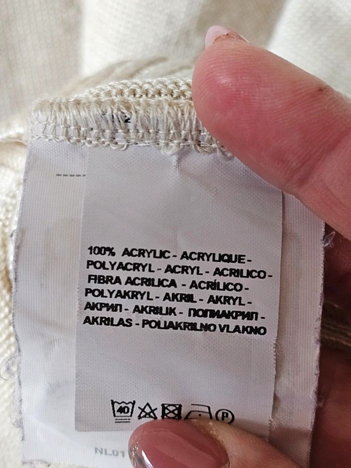 En bon état (Quelques bouloches) Longueur totale 70cm Largeur aisselle à aisselle 64cm Largeur épaules à épaules 44cm Matière 100% acrylique