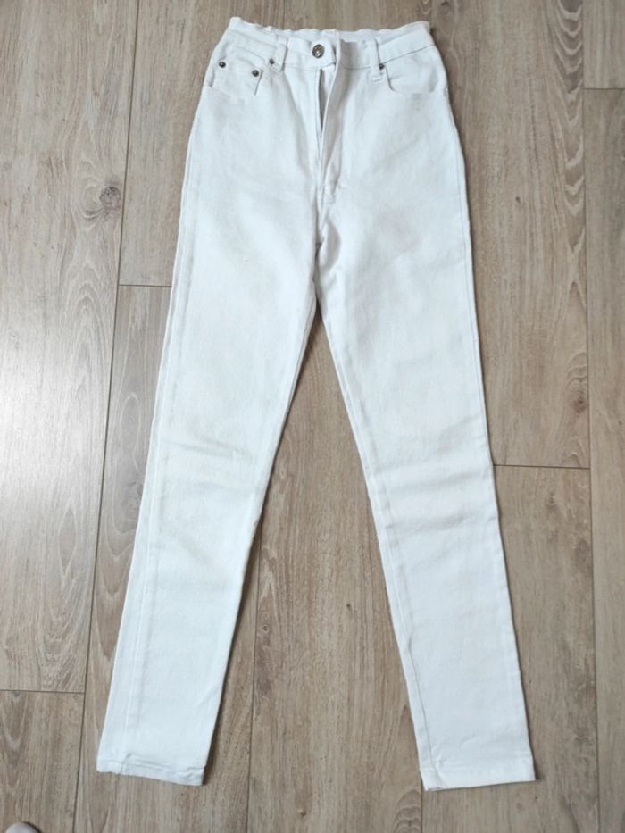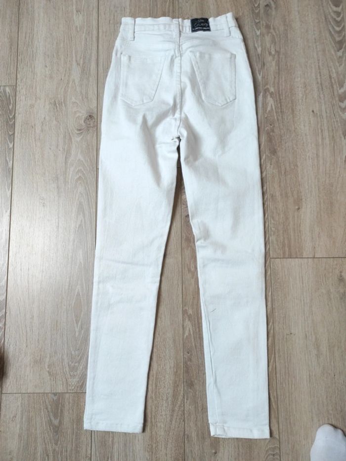 Jean blanc Taille haute Taille s étiquette de taille coupée Miss twixy