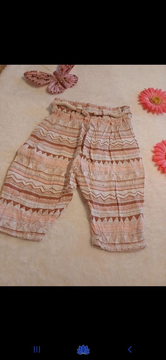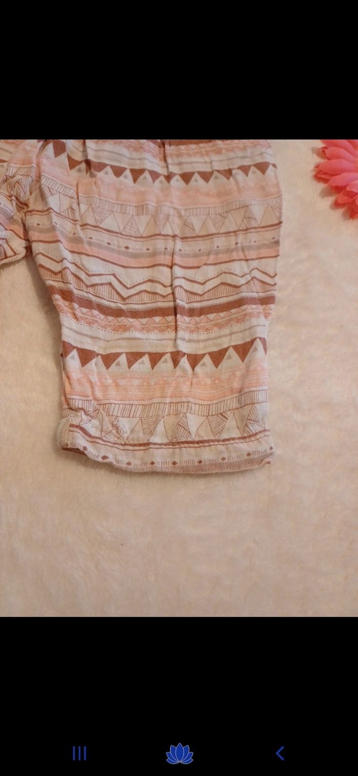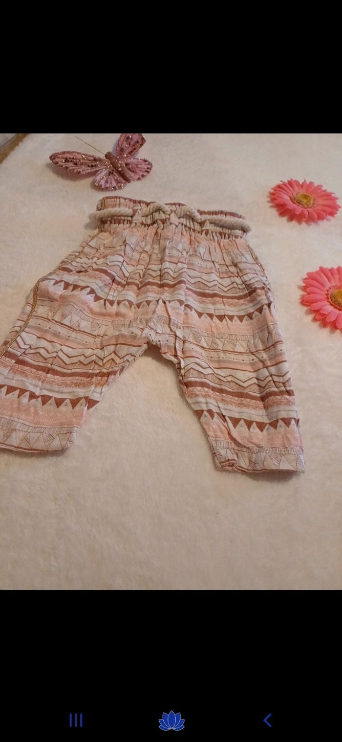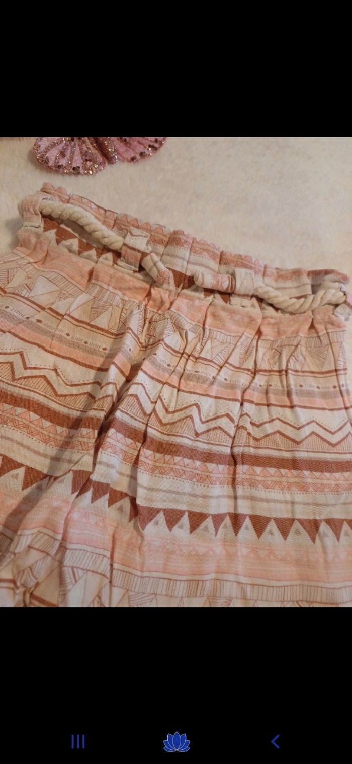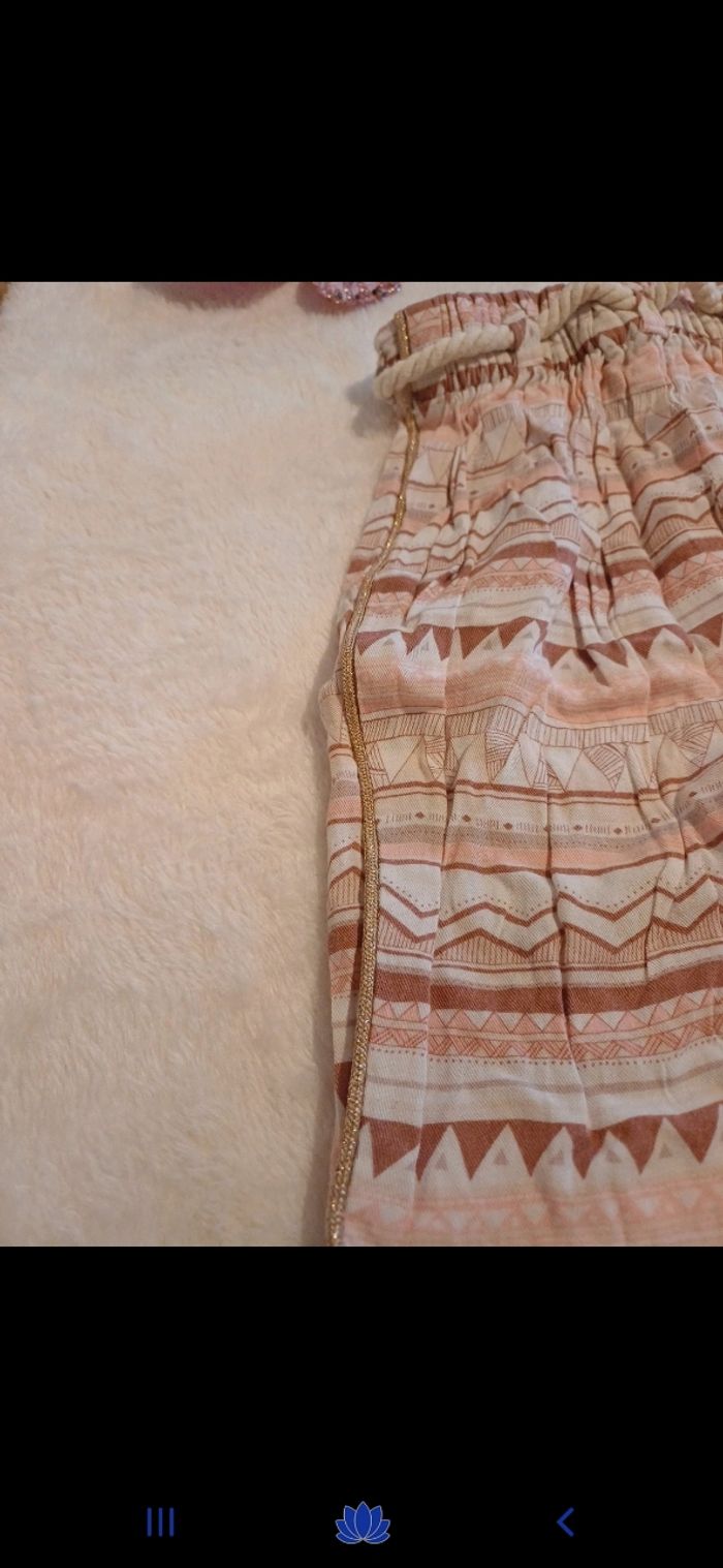 Pantalon très léger avec motifs et bandes dorées sur les côtés. Cordon à la taille