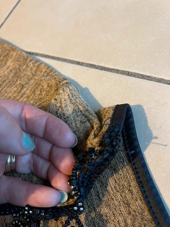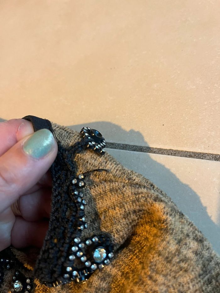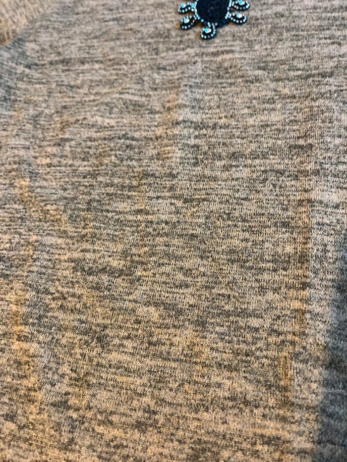 #femme38/40 Pull taille 38/40 - il n’y a plus l’étiquette Bon état général - défaut visible au niveau de la déco autour du col - surement partie avec les lavages Je sais pas comment décrire la couleur 2€