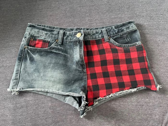 #femme38 Short à carreaux sans étiquette M’a était vendu pour un 40 mais est plutôt un 38 J’ai mis en photo la mesure du haut - environ 42,5cm Non porté par moi même du coup