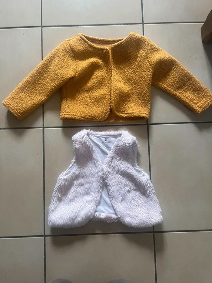 #24moisfille Lot de 2 gilets taille 24 mois Rose clair et moutarde Très bon état