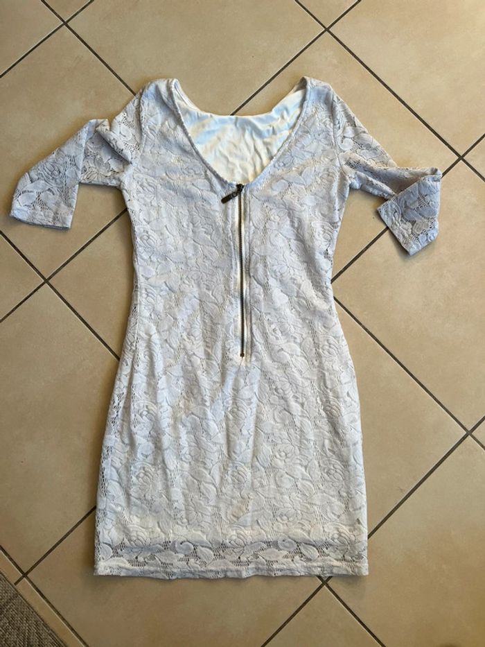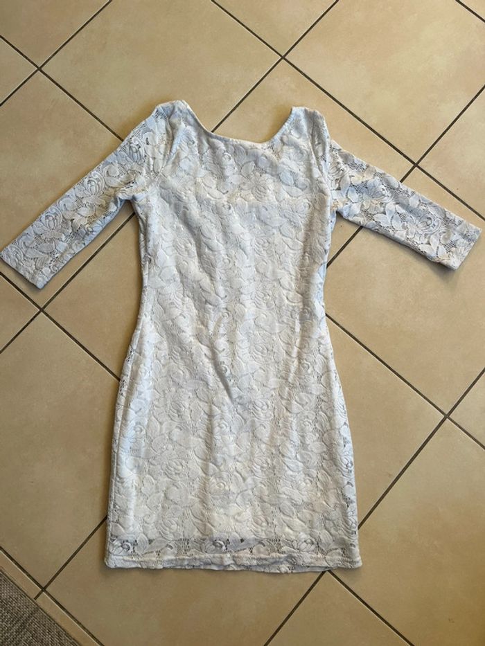 #femme Robe taille S Effet dentelle Robe qui a été porté et lavé , non déchiré Blanche d’origine donc le blanc n’est plus blanc neuf . A reçu un trempage au percarbonate Prix négociable évidemment