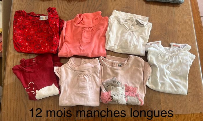 #12moisfille Lot de t-shirt manches longues Taille 12 mois Toutes marques