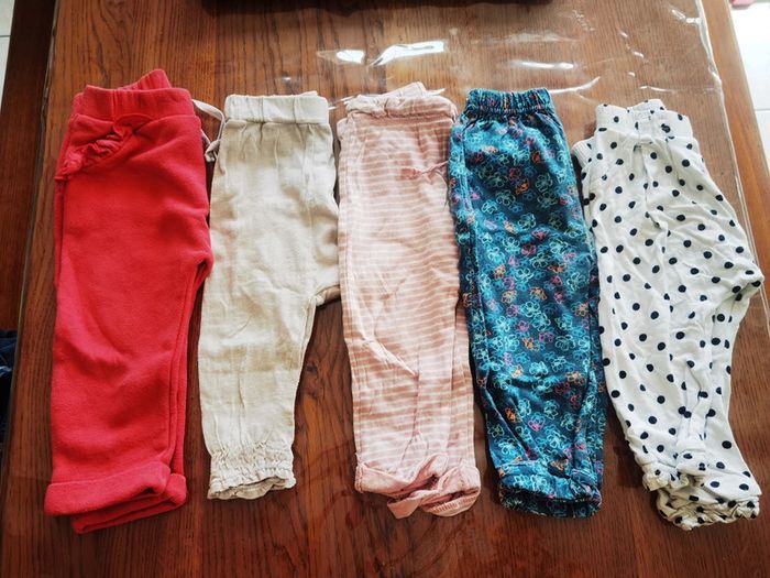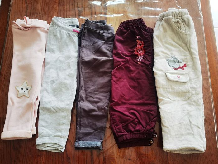 #18moisfille Divers pantalons 18 mois En majorité léger 15 articles, 1-2€ l'unité suivant l'article 20€ le lot ARTICLES D'OCCASION pouvant comporter des défauts