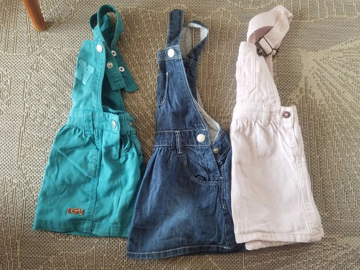 #18moisfille Lot robes 👗👗 en jeans Taille 18 mois La foncé a un défaut sir l'arrière mais ne gene pas pour la porter (pour un tel effet les prix augmentent en neuf) Possibilité a l'unité 2€