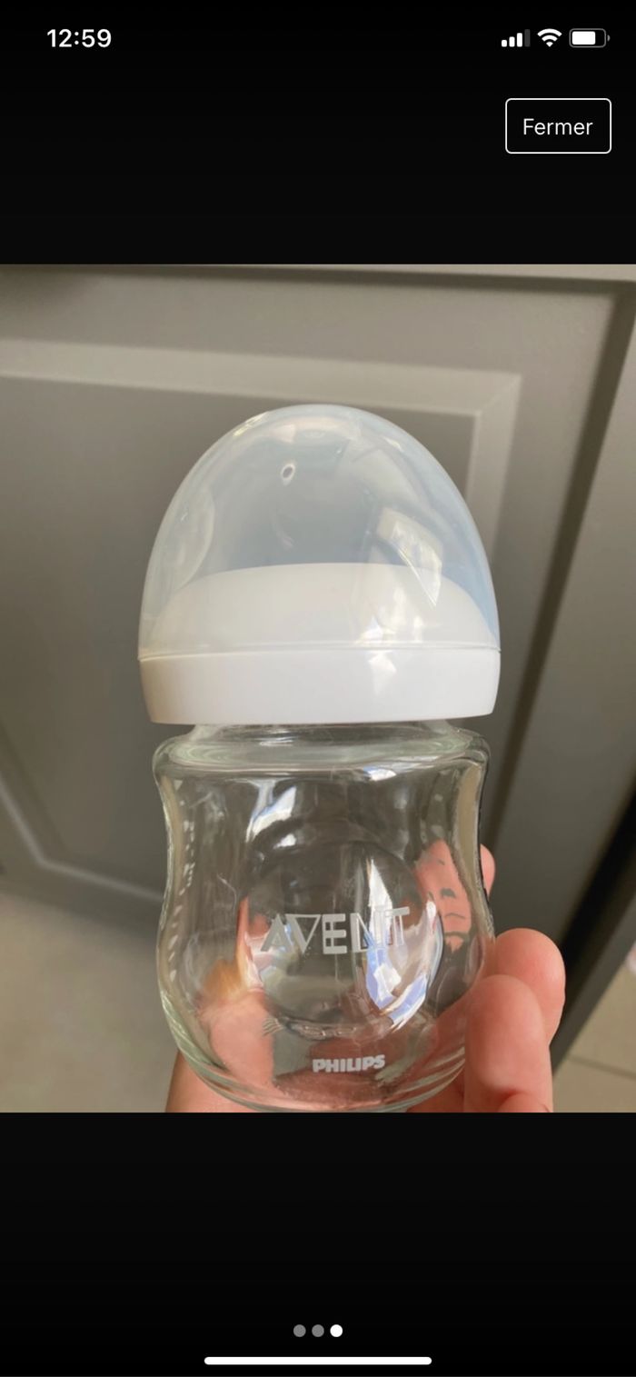 Lot de 2 biberons en verre, 120mL (Les tétines ne sont pas vendues avec) AVENT En très bon état.