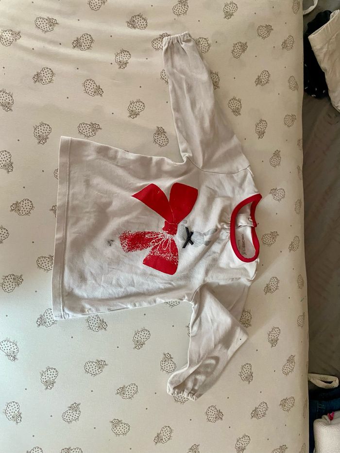 Lot 22 vêtements bébé fille 6mois Marque principalement c&a et orchestra 8 bodys 1 combi courte 4 short 3 tshirt 2 tshirt à manche longue 3 leggings 1 robe 2 vestes Tache en photo