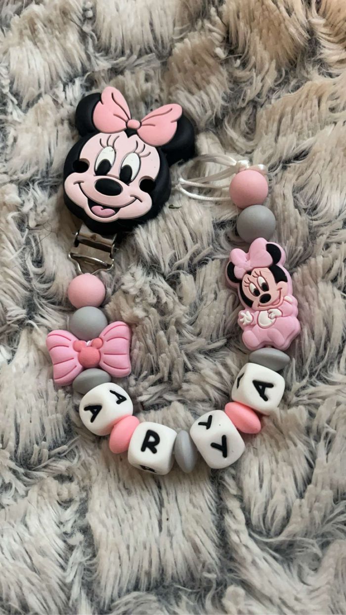 Attache tétine personnalisé en silicone ou en bois , en crochet au souhait de l’acheteur Possibilité de créer avec d’autre modèle ( Marie , mickey, roi lion , minnie , thème noël plein d’autres) n’hésitez pas à me demander et regarder mon dressing. Une photo vous sera envoyée avant l’expédition pour vous ayez un aperçu du rendu. Tous les produits sont réalisés avec du materiel spécial conçu aux bébés , enfants.