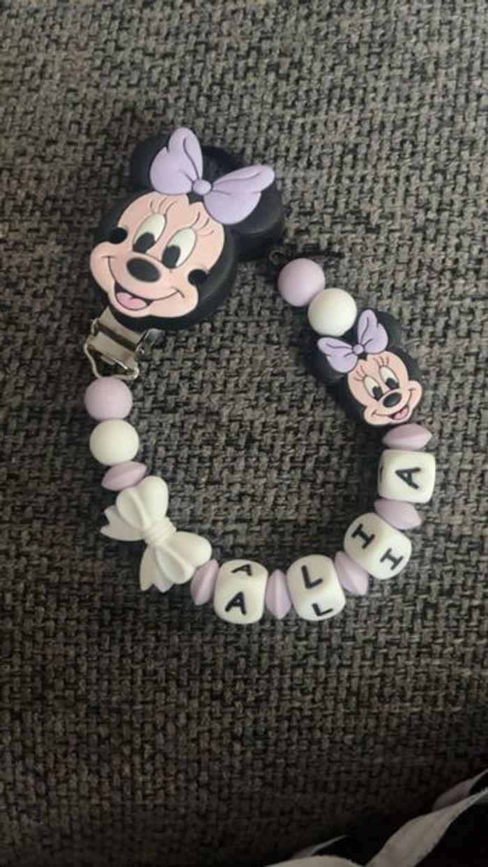 Attache tétine personnalisé en silicone ou en bois , en crochet au souhait de l’acheteur Possibilité de créer avec d’autre modèle ( Marie , mickey, roi lion , minnie , thème noël plein d’autres) n’hésitez pas à me demander et regarder mon dressing. Une photo vous sera envoyée avant l’expédition pour vous ayez un aperçu du rendu. Tous les produits sont réalisés avec du materiel spécial conçu aux bébés , enfants.