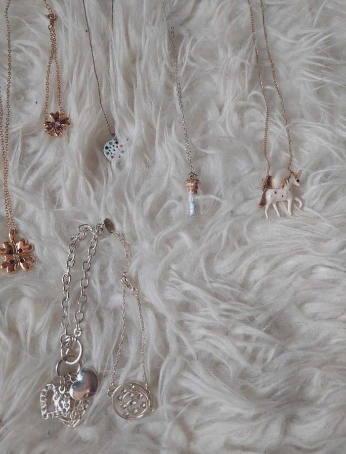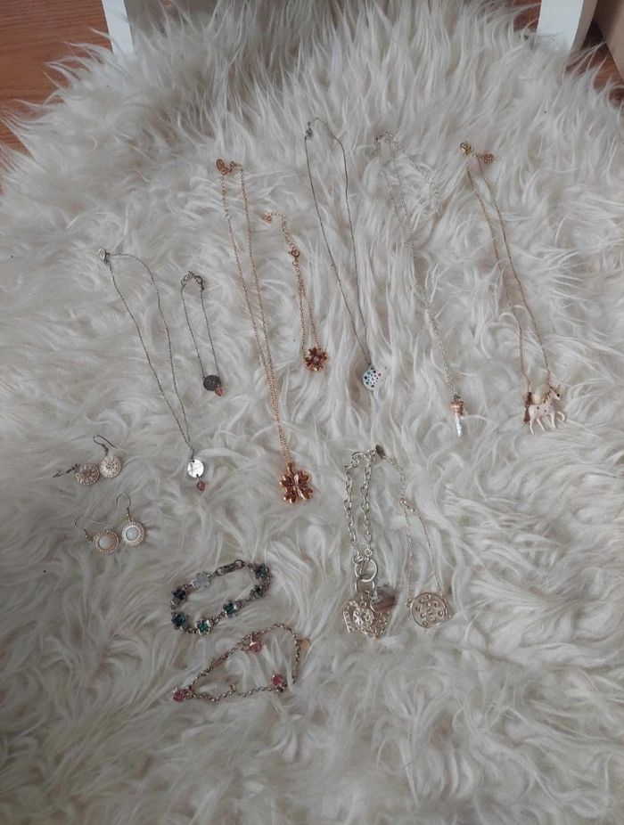 〰️ Lot de bijoux pour petite fille comprenant: 2 petites paires de boucles d'oreilles pendantes, couleur argentée une parure collier et bracelet, pendentif rond et perle rose, coloris argenté une parure collier et bracelet, pendentif trèfle, coloris doré un collier coloris argenté, pendentif rond blanc avec strass dessus un collier coloris argenté, petite bouteille transparente avec une licorne dedans un collier coloris doré, pendentif licorne un bracelet coloris argenté, petits ours un bracelet coloris argenté, breloques roses un bracelet coloris argenté, breloques coeurs un bracelet coloris argenté, pendentif rond avec strass dessus 🌸Etat: TBE 🌸Marque: Claire's et H&M 🏷 Les réductions sur les lots sont activées ⏳️ Pas de réservation ✂️ Les colis sont soigneusement emballés 🎁 Un petit cadeau sera mis dans chaque colis #virginie63zfille #virginie63zlot #virginie63zbijoux