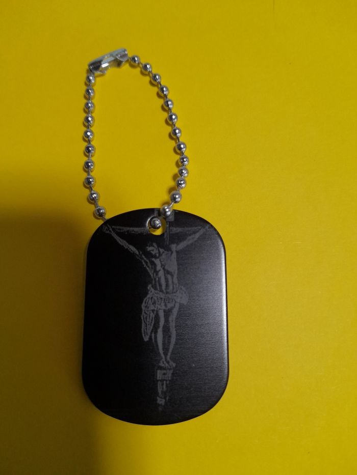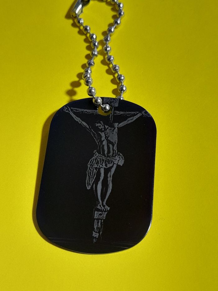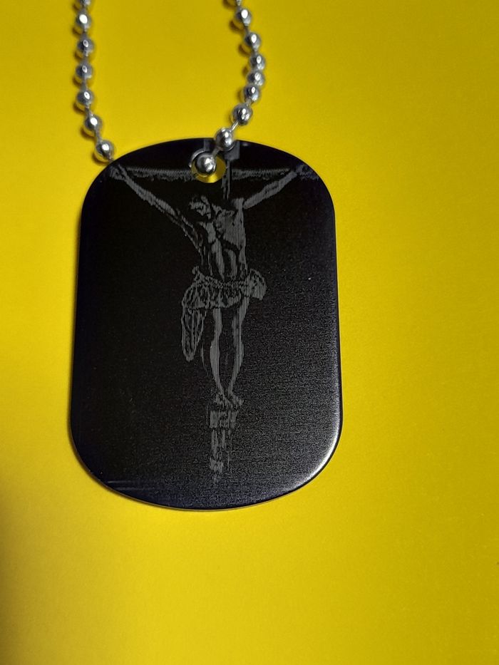Gravure sur médaillon anodisé jesus christ 3.8cm x 2.5cm Jesus ,croix ,chrétienne, chrétien, crucifix, protection, croyant ,bijoux