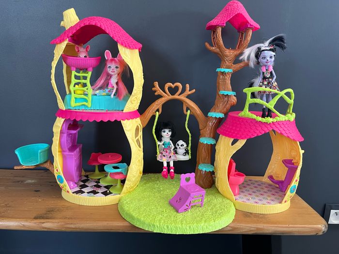 Maison enchantimal Panda Avec 3 poupées avec 2 petits compagnons Plus accessoires ( complet petit éléments non présent sur la photo) - La maison sera démontée pour l’envoi