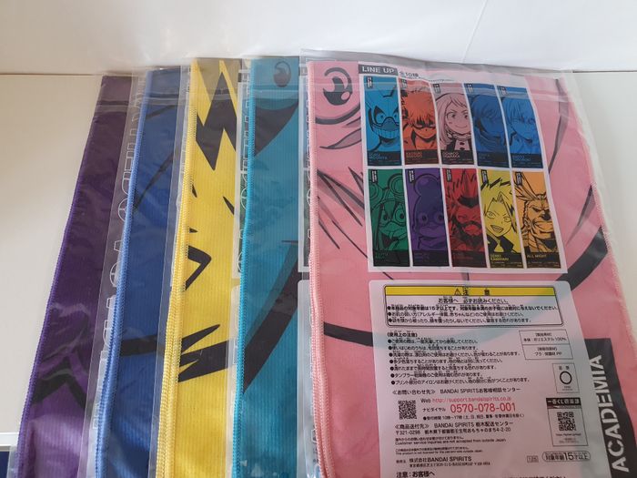 lot de de 5 serviette tenya, minoru, denki, ochaco, izuku ichiban kuji my hero academia begin  the