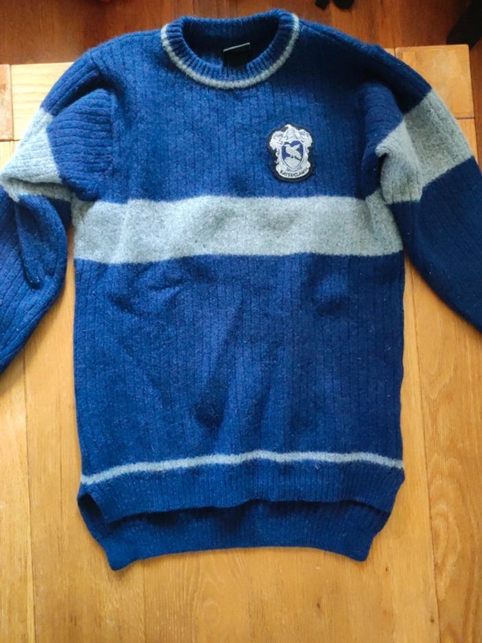 Pull over Quidditch laine Harry Potter Maison serdaigle (Ravenclaw) 100% laine Porté 1 fois Prix neuf 89,9€ acheter chez Universal Attention taille S mais a rétrécis correspond plutôt a une taille XS pour êtres confortable Description Vêtement officiellement licencié des films Harry Potter avec écusson Ravenclaw cousu, Coupe confortable Dos un peu plus long Qualité chaude de haute qualité, fabriquée en Écosse directement de l'équipementier de l'équipe de tournage de Harry Potter