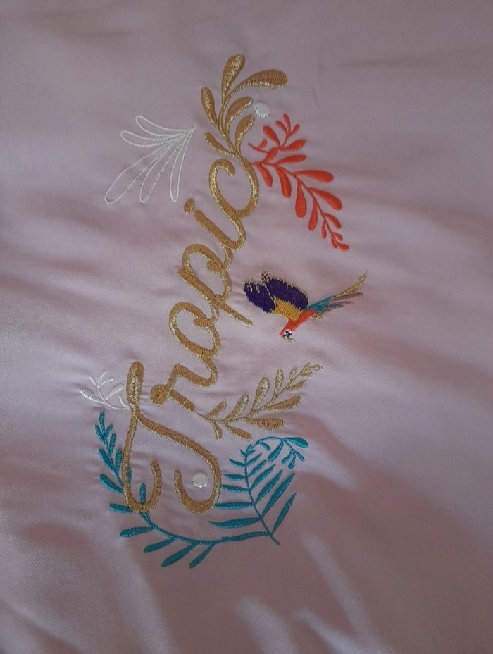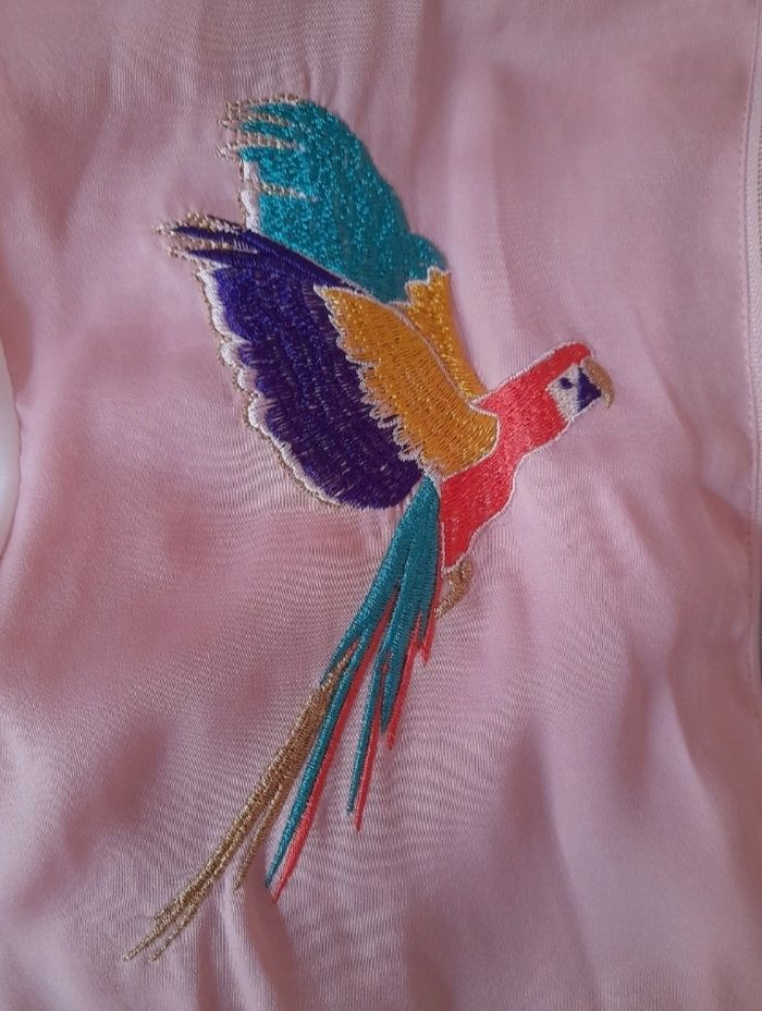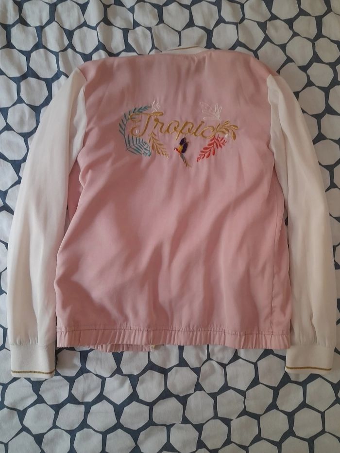 Peu porté, article en très bon état Veste bomber perroquet rose brodé