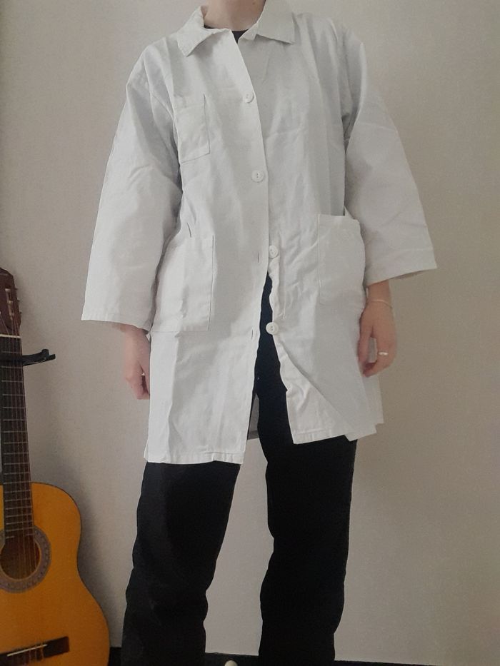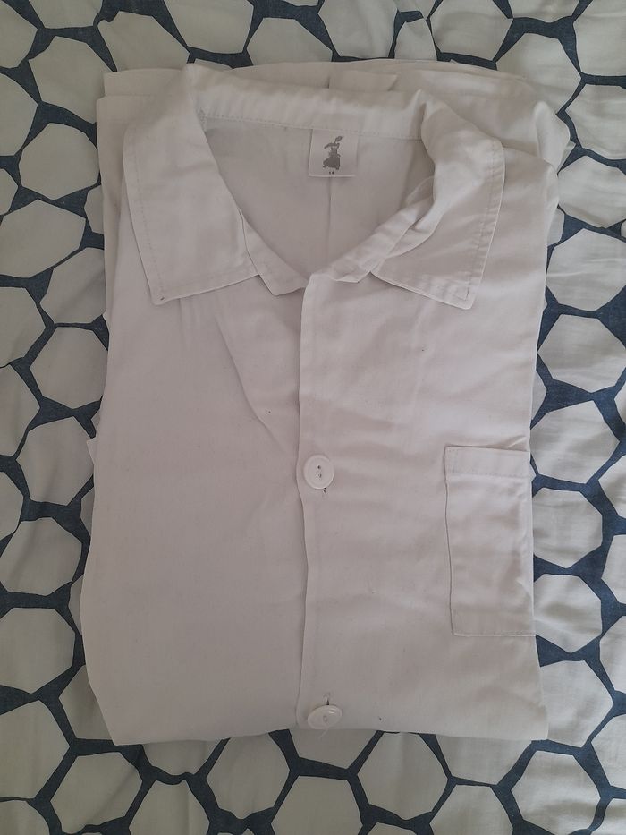 Blouse blanche utile pour les cours de physique chimie au collège et lycée par exemple. Porté peu de fois, en très bon état. Taille 14ans, assez large, elle peut durer toute la scolarité.