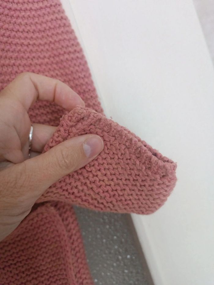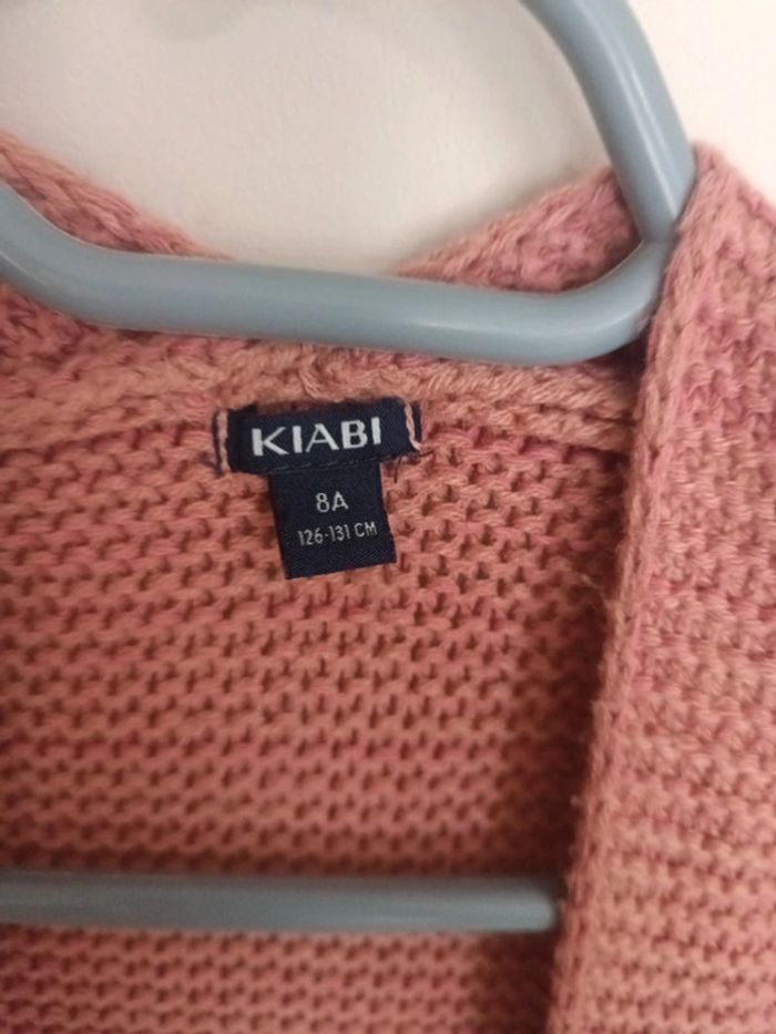 Gilet en grosses mailles rose Marque kiabi taille 8 ans Très bon état Un petit fil de tiré sur l'arrière de la manche droite visible sur photo