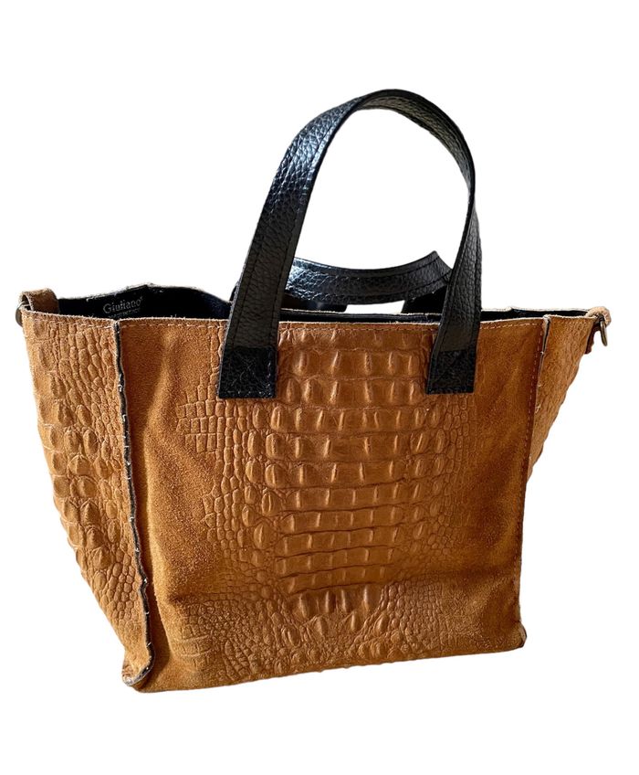 Sac à main brun et noir effet croco Giuliano made in Italy très bon état - photo numéro 1