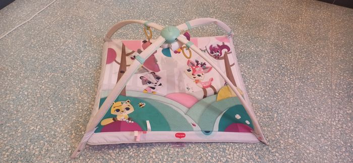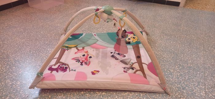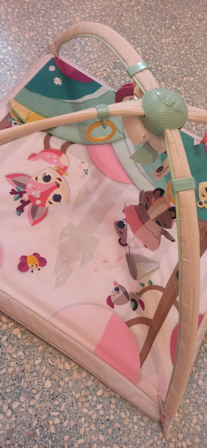 Tapis d'éveil en parfait état Dispose d'un boîtier musical pour jouer une petite musique. Manque juste quelques pampilles a rajouté selon votre goût.