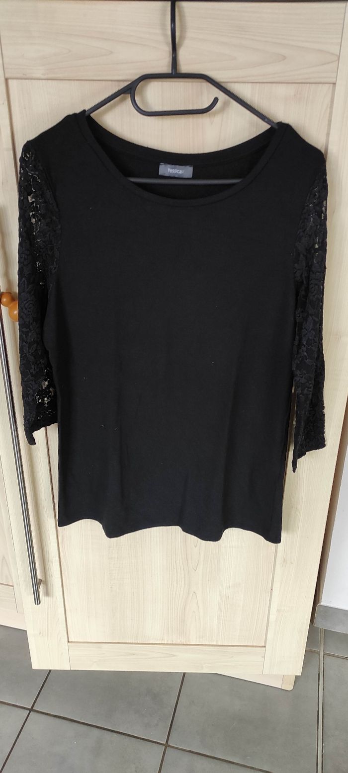 Pull fin noir manches 3/4 dentelle Yessica taille S - photo numéro 1
