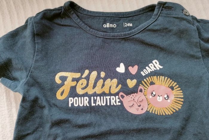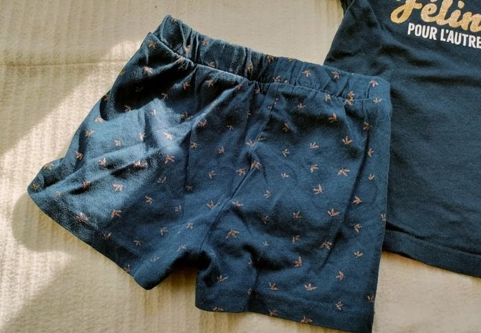 Ensemble short et t-shirt bleu marine, détails dorés, très bon état porté 1 ou 2 fois. Taille 24 mois