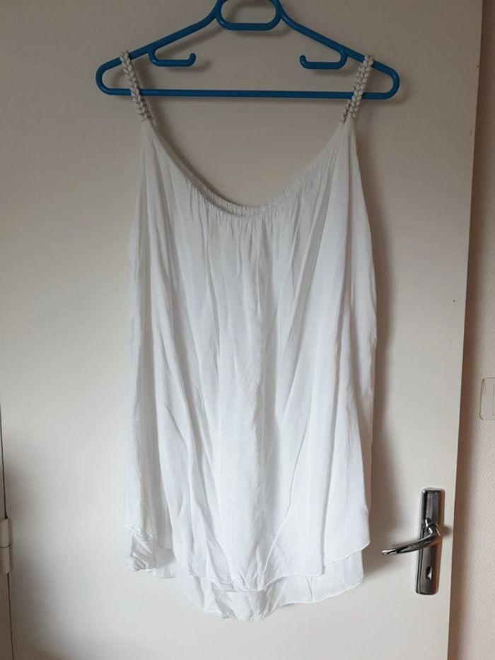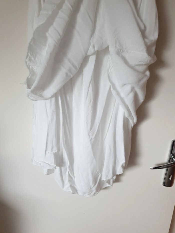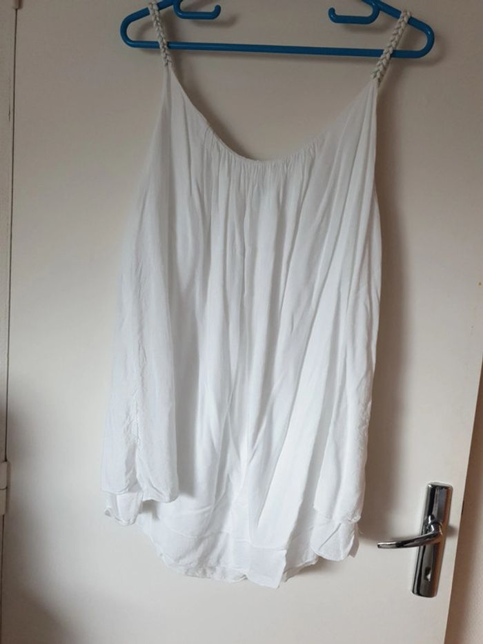 Tunique marque 3 étoiles grise (je ne connais pas 🤷‍♀️) Vérifier les dimensions pour la taille car pas indiqué Longueur 80 cm (en prenant du haut de la bretelle) Aisselle au max 70cm mais pour moi faut compter moins car ça se porte fluide. Elle est doublé En très bon état