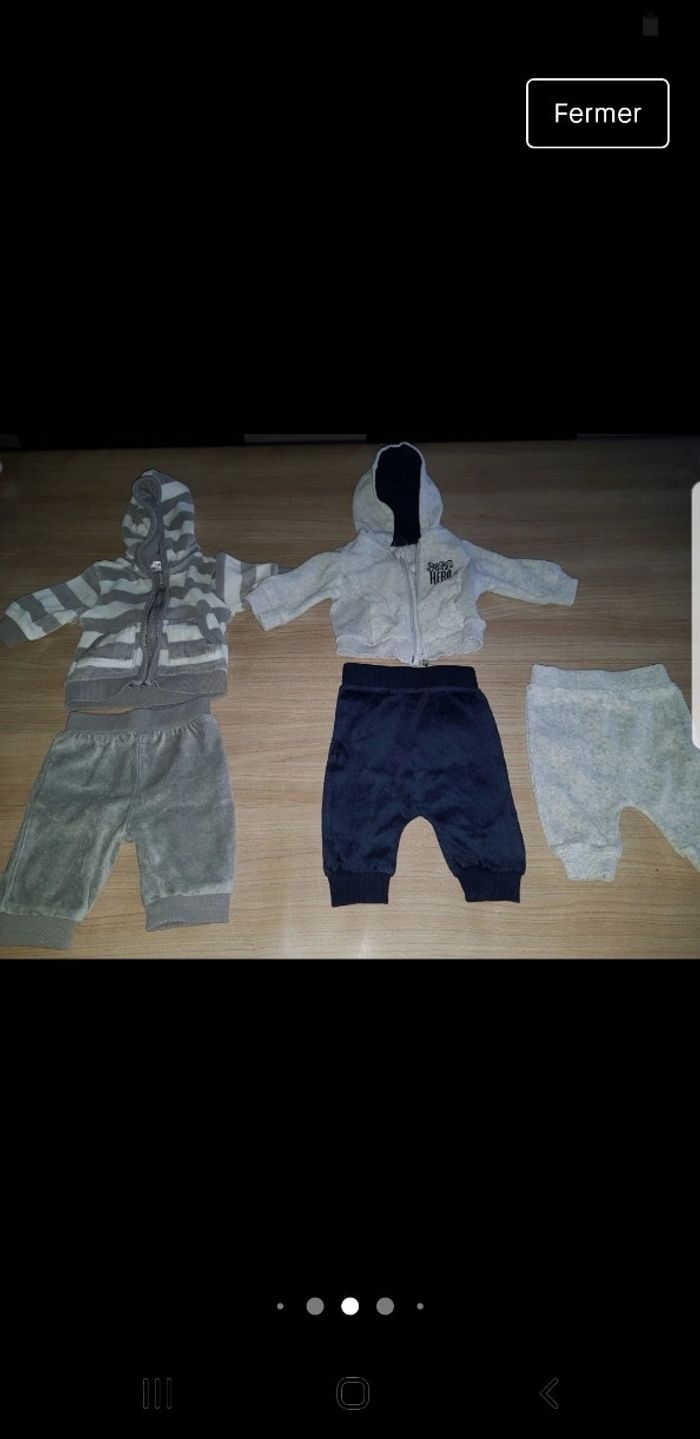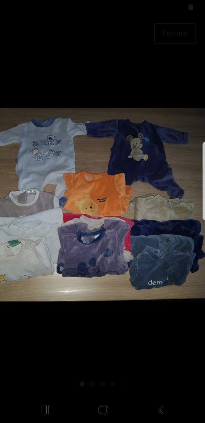 Lot comprend 10 pyjamas 2 bodys manches courtes 10 bodys manches longues 3 ensembles 3 gilets 1 chemise 2 pantalons dont 1 très épais pour l'hiver 1 ensemble bonnet et chaussons