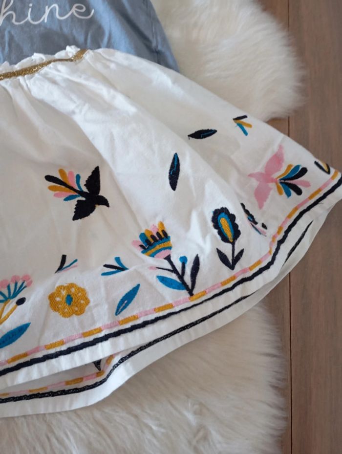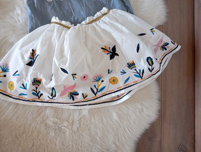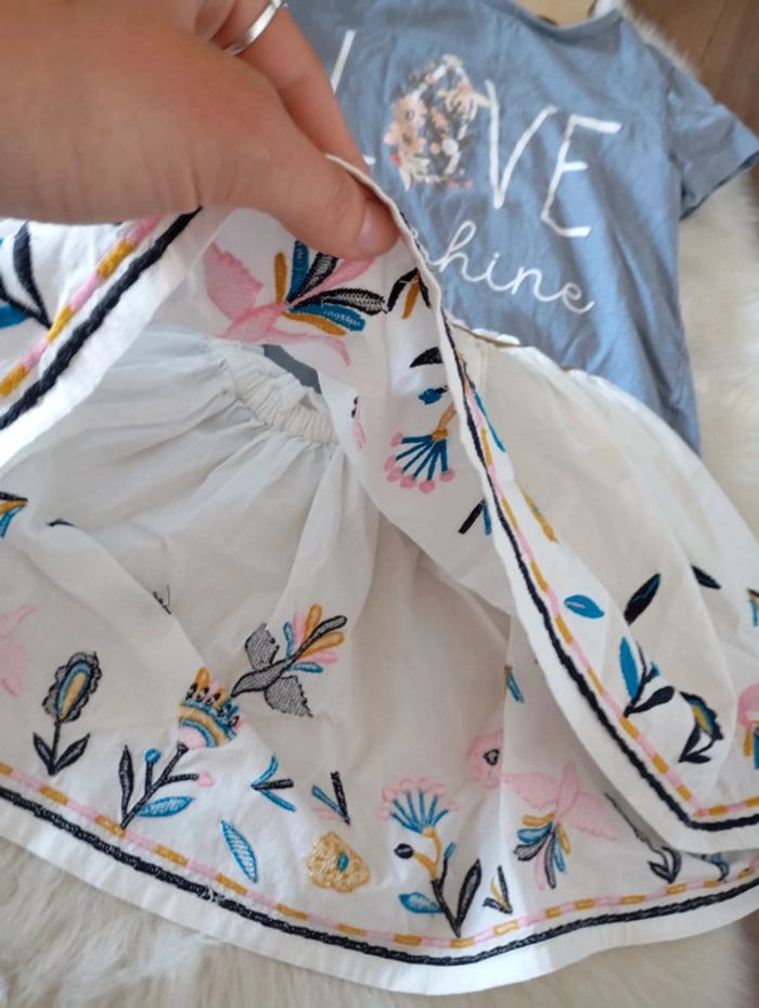 Magnifique tenue comprenant une jupe blanche a broderie très chic un côté folklorique T-shirt lupilu 2/4 ans (taille grand) écriture love en liberty sunshine #lckids #littlecicogne #izianaquatreans #lupilu