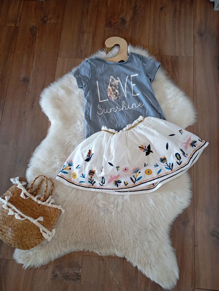 Ensemble fille 4 ans jupe LC kids by little cigogne + t-shirt lupilu love