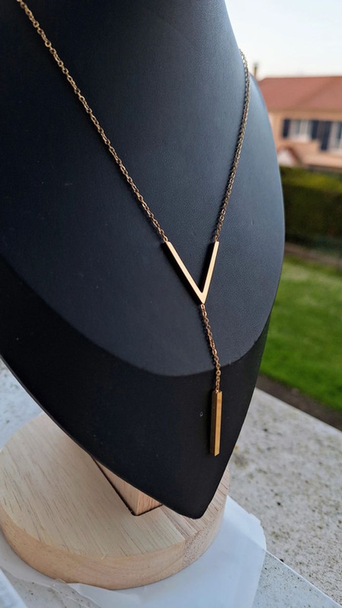 Collier en acier inoxydable pendentif en V, Collier femme minimaliste chaine acier inoxydable - photo numéro 1