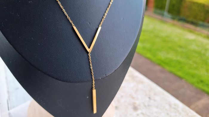 Collier en acier inoxydable pendentif en V, Collier femme minimaliste chaine acier inoxydable - photo numéro 3