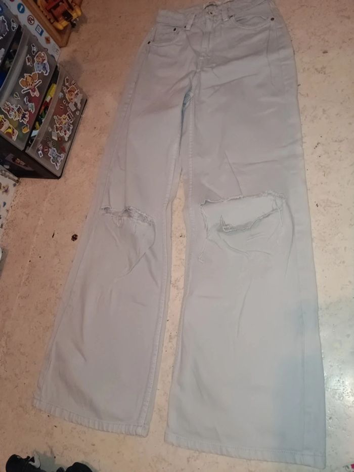 Jean flare destroy bershka t 36 gris clair