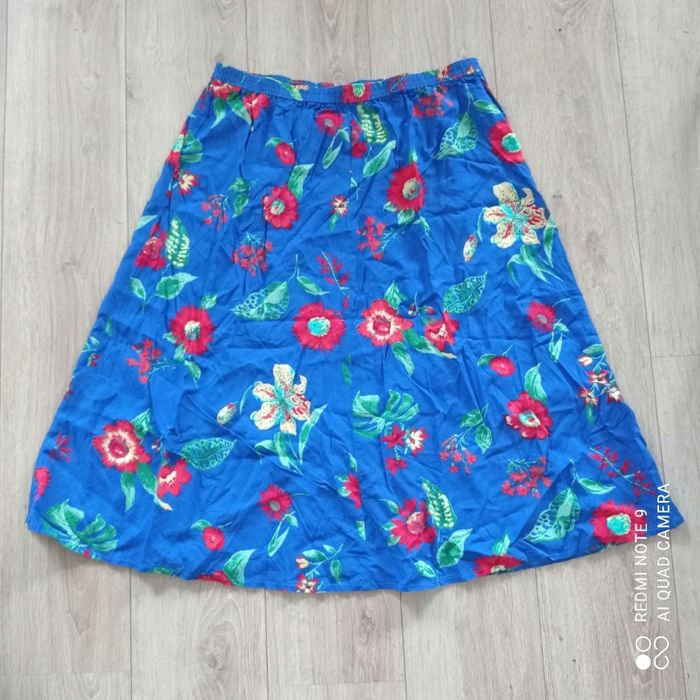 Jupe bleue  à fleurs rouges t44/46 - photo numéro 3