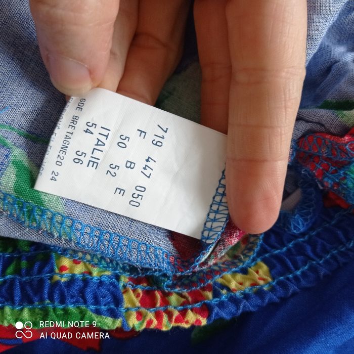 Étiquetée taille 50 mais selon moi taille plus petit. Mesures prises à plat : largeur à la taille (élastiquée), longueur : 77cm. Style vintage. C5