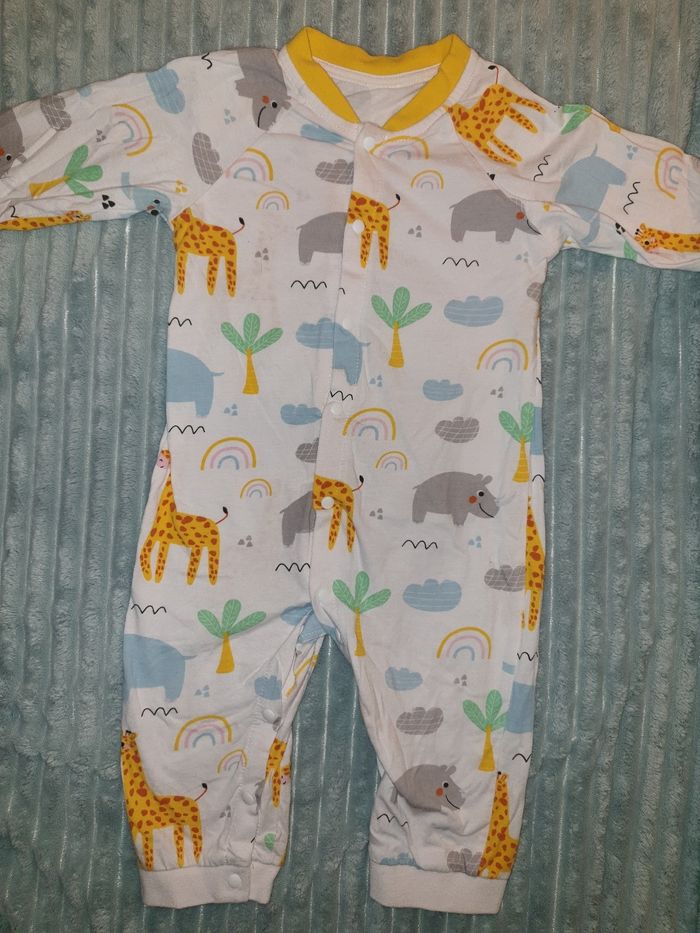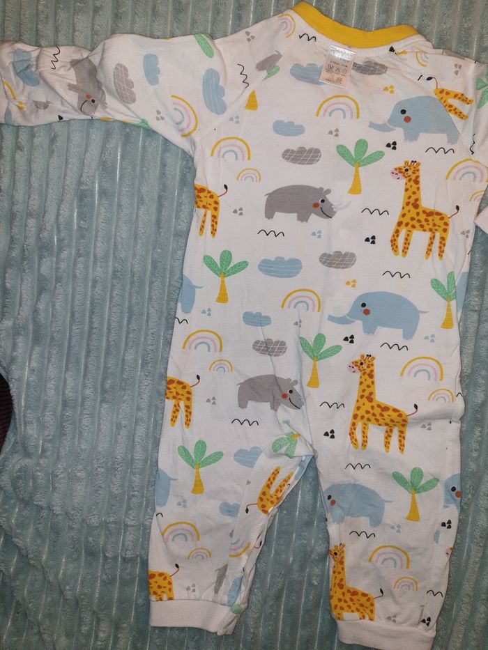 Lot de 2 grenouillères Taille 6/9 mois Motif dinosaure + animaux & arc-en-ciel