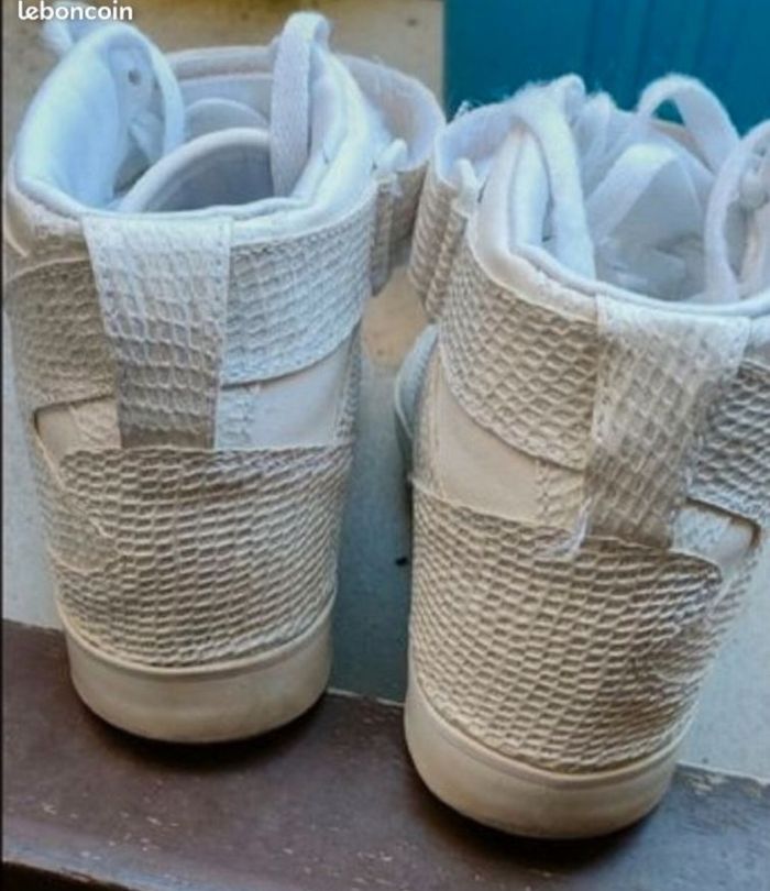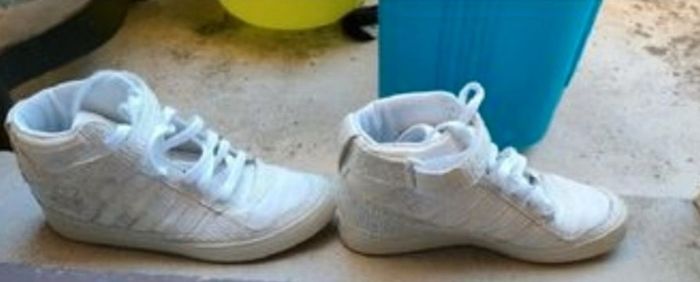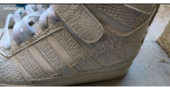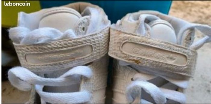 Bonjour je vends cette paire d' Adidas blanches talons compensés taille 40 2/3, très bon état général. Il y a une petite tâche sur le scratch et un logo sur une chaussure un peu usé voir photos. (D'autres photos en PV) Bonne journée #adidas #chaussures #compensé ☺️