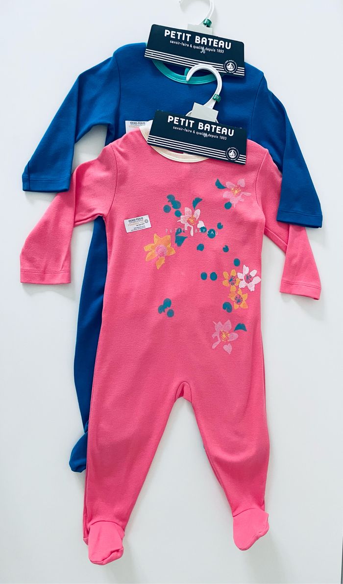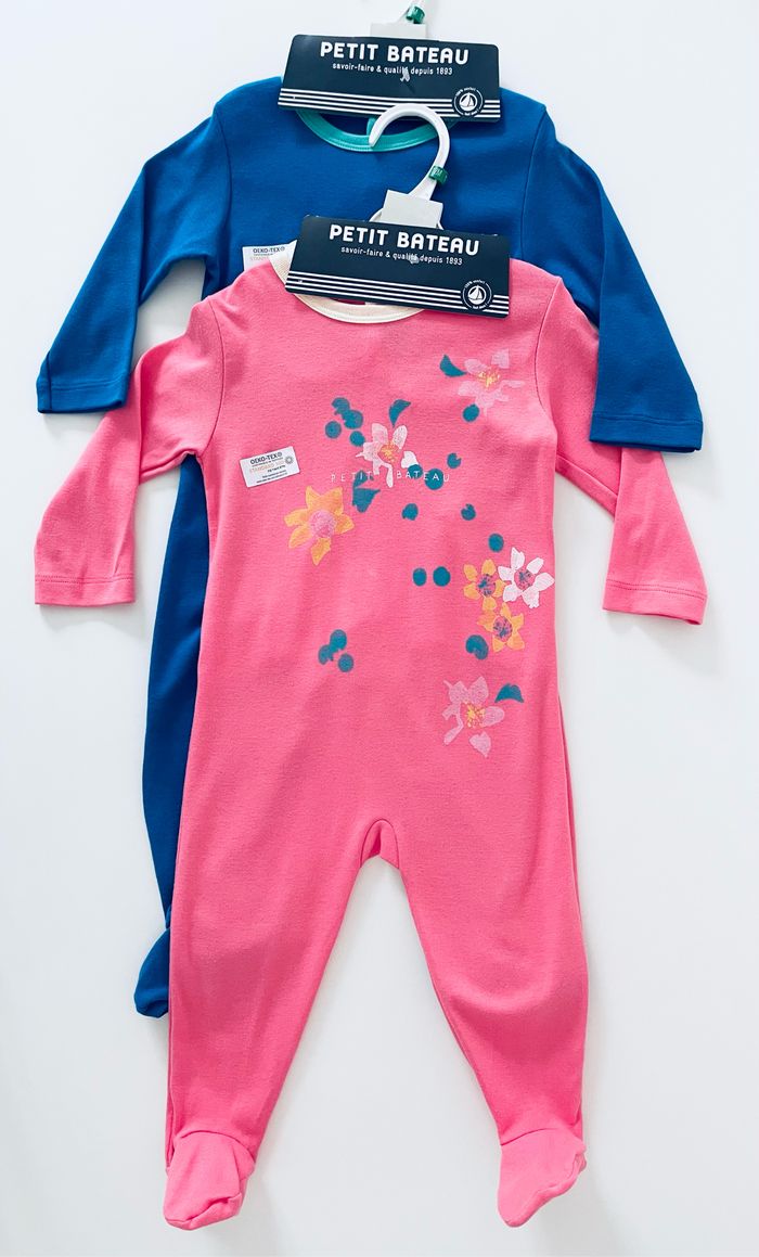 Magnifique lot de 2 pyjamas Petit Bateau Taille 12 mois 100% coton Article neuf avec étiquette