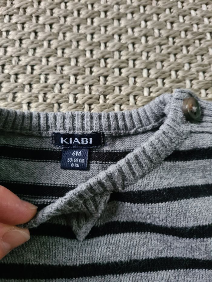Pull rayé fin gris/noir - 6 mois - photo numéro 6