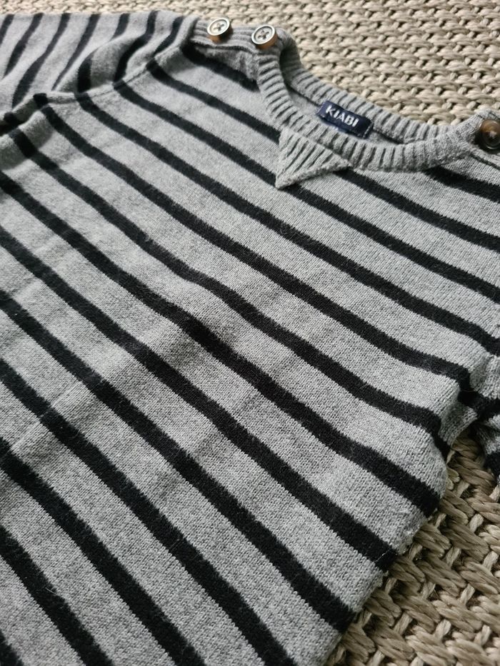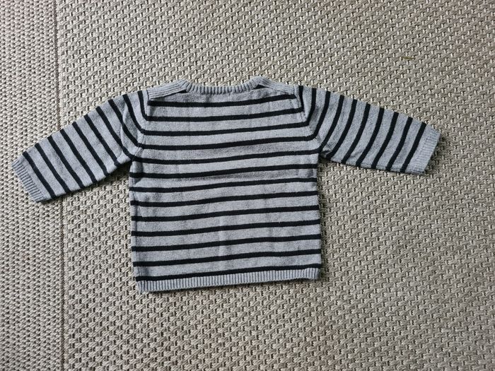 Pull rayé fin gris/noir - 6 mois - photo numéro 3
