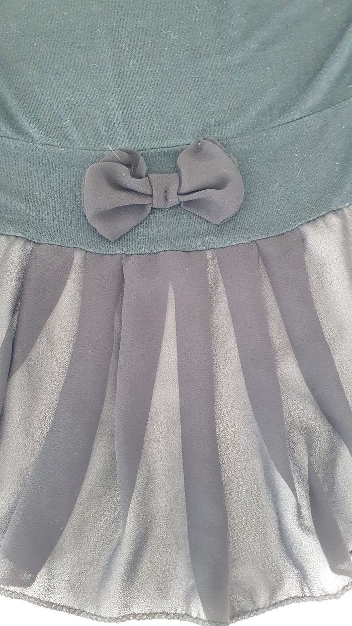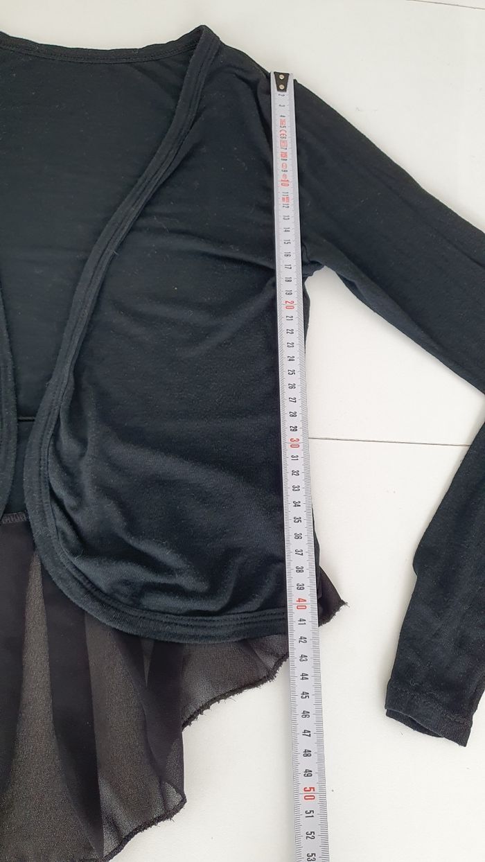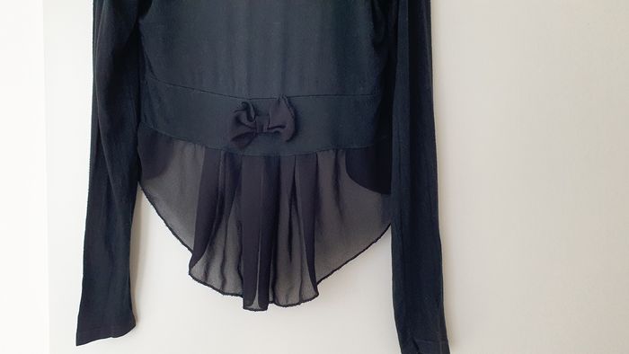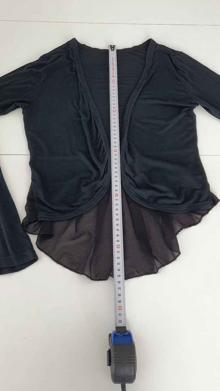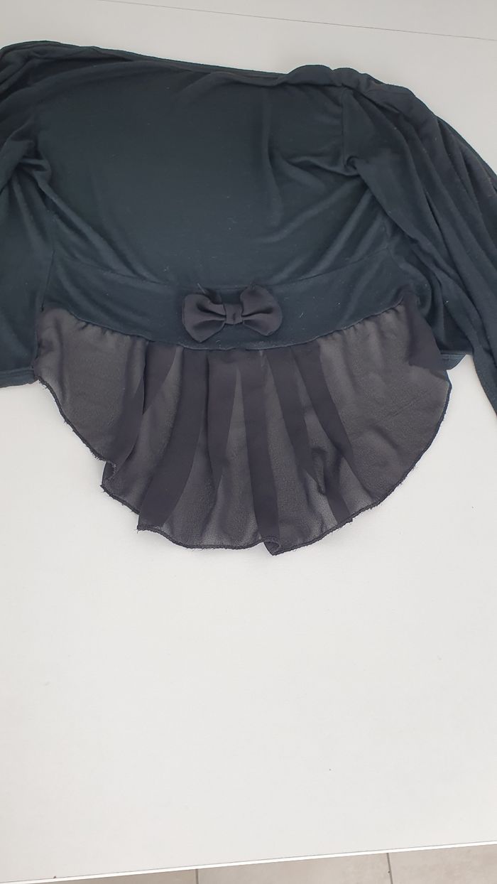 Gilet noir en très bon état Plus long derrière, en crêpe et un noeud