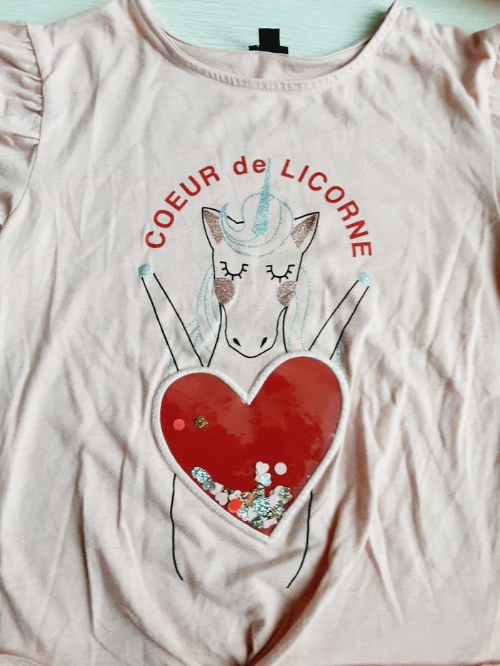 Vêtement fille tee-shirt manches longues Kiabi cœur de licorne rose 10 ans - photo numéro 4